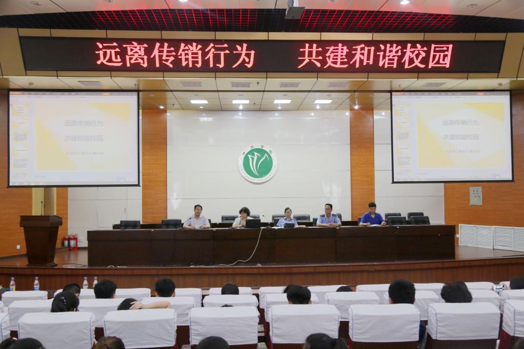 为增强学校师生对传销的辨别能力,认清传销的本质,自觉抵制和远离传销行为,6月16日,我校联合许昌市工商局在学校开展“远离传销行为建设和谐校园”主题宣传教育活动。许昌市工商局及东城分局相关负责人,我校党委宣传部、学工部、保卫部等单位负责人及师生代表300余人参加了活动。
