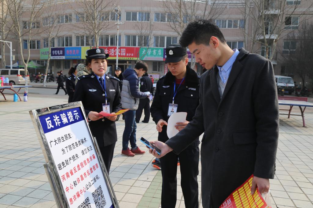 为增强广大师生的安全意识,提高鉴别虚假信息的能力,3月1日上午,许昌市公安局东城区分局联合我校保卫处、学生处、后勤管理服务中心,在我校满庭芳餐厅前开展了防范电信诈骗宣传活动。