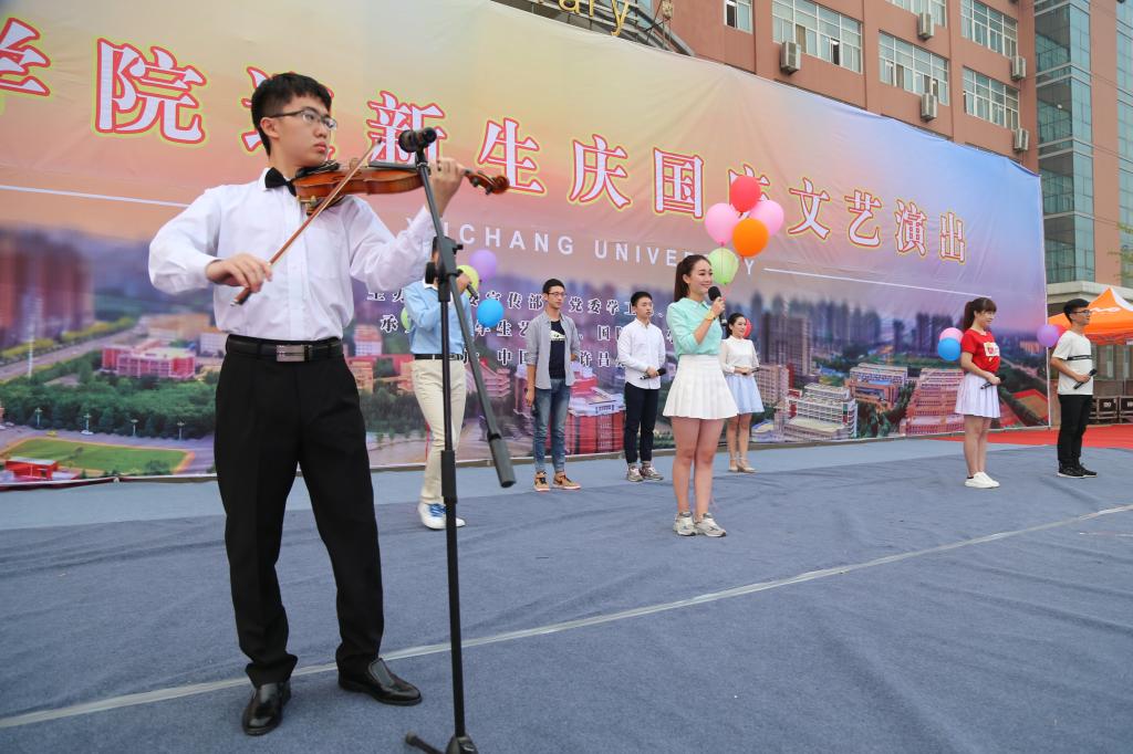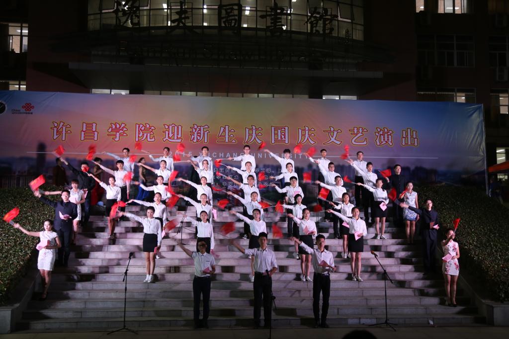 9月29日,由校党委宣传部、学工部(处)、团委共同主办,大学生艺术团和国际教育学院承办的“青春与梦想——2015许昌学院迎新生庆国庆”文艺演出在我校弘毅广场隆重举行。校领导陈建国、赵继红、马超、崔斌、黄怡俐、郭涛,罗凤英、杜志傲,中国联通许昌分公司总经理张伟出席晚会现场。党办、宣传部、学生处、团委、国际教育学院、图书馆等相关部门的领导老师和我校2015级近6000名新生共同观看了晚会演出。