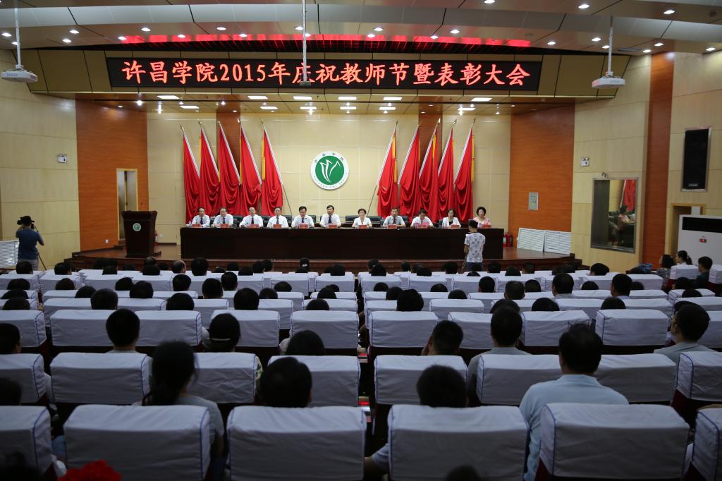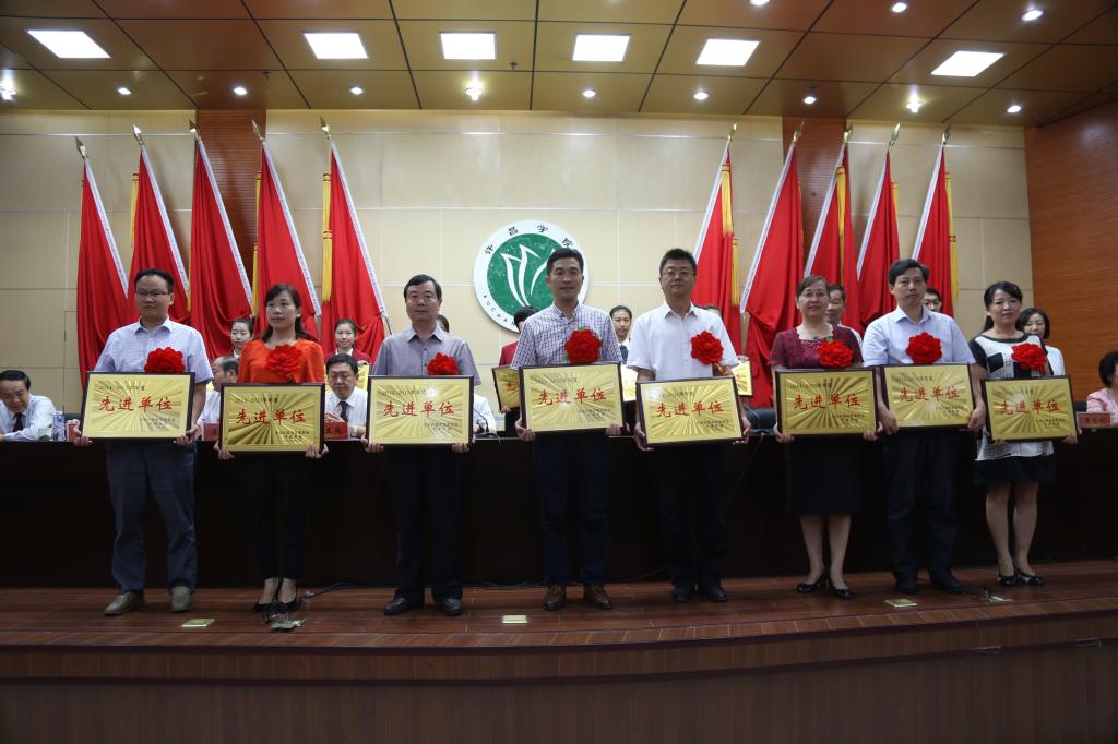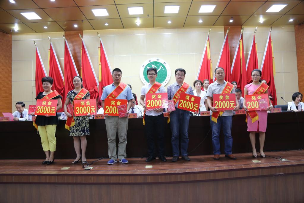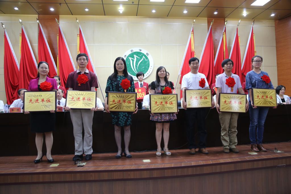 会上,崔斌副院长宣读了《关于表彰先进单位、优秀教师和优秀教育工作者的决定》。土木工程学院等15个先进单位、苗阳等107名优秀教师、陈遂德等30名优秀教育工作者受到表彰。黄怡俐副院长宣读了《关于表彰第八届教学名师和第七届教学新秀的决定》以及《关于表彰第六届“十佳师德标兵”、2014—2015年度师德先进个人的决定》。吴志勤、吴杰老师被授予许昌学院“教学名师”,陈素华等10位老师被授予第七届许昌学院“教学新秀”,张凤云等10位老师被授予第六届“十佳师德标兵”,黄高峰等65名师德先进个人受到表彰。郑直副院长在会上宣读了我校教职工中工龄满30年的教职工名单,并通报了一年来我校教职工荣获的省级以上荣誉情况。陈建国、赵继红等出席会议的学校领导为获得表彰的先进单位和先进个人颁发了奖牌、奖状和荣誉证书。