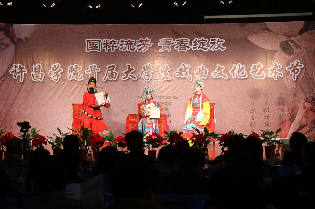 开幕式上,校党委副书记马超致开幕词。他说,传承和弘扬戏曲文化艺术是高校义不容辞的责任,是当代大学生的重要历史使命。许昌学院历来重视并支持对学生进行中国传统文化教育,不断搭建平台,丰富载体,希望借助本次活动让戏曲文化深深植根于许昌学院这片沃土,开出绚烂之花。河南省京剧票友协会会长徐湘东在致辞中表示了对本次活动的充分肯定,他说,许昌学院率先在全省高校中举办戏曲文化艺术节,对于传承戏曲文化做出了极为可贵的贡献。学生代表刘国军结合自身大学生活的戏曲经历,表达了对传统文化的热爱,并呼吁广大学生担负起传承经典的重任。接下来,来自不同地区的票友们为大家带来了一个个精彩的节目。河南省京剧票友协会的演出剧目《杜鹃山》、郑州庆怡堂京剧社的《岳母刺字》和《荒山泪》、河南师范大学的《状元媒》、许昌学院的《文昭关》、平顶山市京剧协会的《红灯记》,传统剧目在现代人的演绎中焕发出新的魅力,表演者的投入与热爱感染着在场的观众,并引发了阵阵掌声。