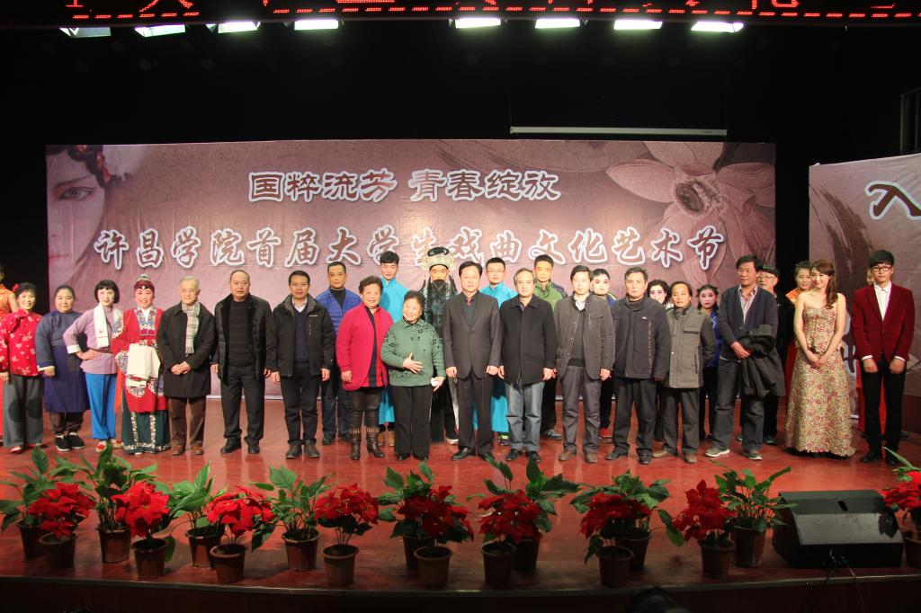 12月19日晚7点,由许昌学院党委宣传部、学工部、团委主办,文学与传媒学院、风信戏曲曲艺社承办的许昌学院首届大学生戏曲文化艺术节在大学生活动中心隆重开幕。许昌学院党委副书记马超,河南省京剧票友协会会长徐湘东,河南省京剧院老旦演员吴晓琳(李多奎弟子),河南省京剧院演员刘志杰,河南电视台梨园春擂主尹子清,平顶山市平煤集团京剧协会会长张宝祥,平顶山市文化宫京剧协会会长郑佳,新乡市京剧协会副会长徐文生等嘉宾以及相关部门负责人、文学与传媒学院师生600余人到场观看。