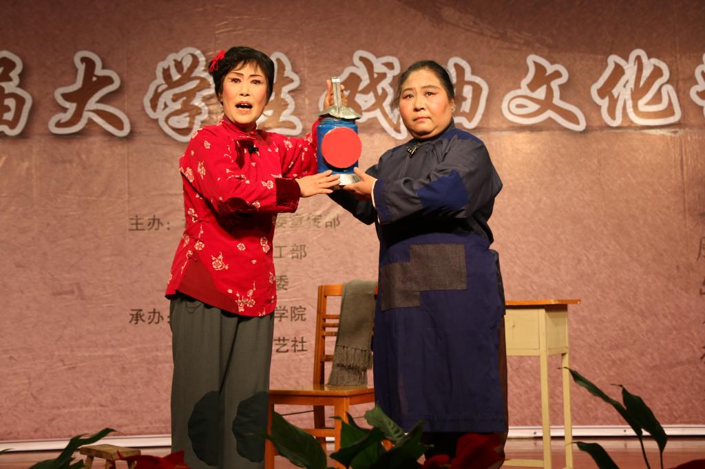 在随后的两天里,来自全省各地的票友协会以及其他高校的戏曲社团为全校师生呈献了四场精彩的京剧专场演出,有《穆桂英挂帅》、《锁麟囊》、《苏三起解》、《贵妃醉酒》、《打龙袍》、《智取威虎山》、《太君辞朝》等五十多出演出剧目,让同学们充分感受到传统文化的熏陶。期间,戏曲文化爱好者还与老艺术家们在B合七演播厅举办了戏曲文化研讨会,就戏曲的发展和传承进行了深入交流与研讨。12月22日晚七点,许昌学院首届大学生戏曲文化艺术节地方戏专场暨闭幕式在大学生活动中心举行。闭幕式有豫剧、越调、曲剧、黄梅戏等多种剧目,让同学们感受到了不同戏曲的风格魅力。