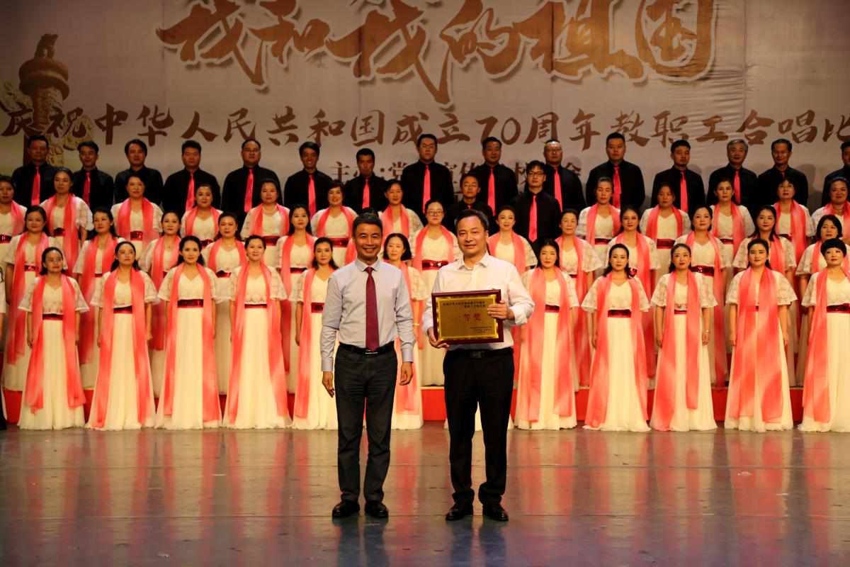 9月27日下午,我校在音乐厅举行“我和我的祖国”——庆祝中华人民共和国成立70周年教职工合唱比赛。党委书记闫纪建、院长岳修峰,党委副书记孙海,纪委书记罗凤英,副院长郑直、崔斌、黄怡俐、郭涛,工会主席高金星出席活动,与师生共同观看了比赛盛况。