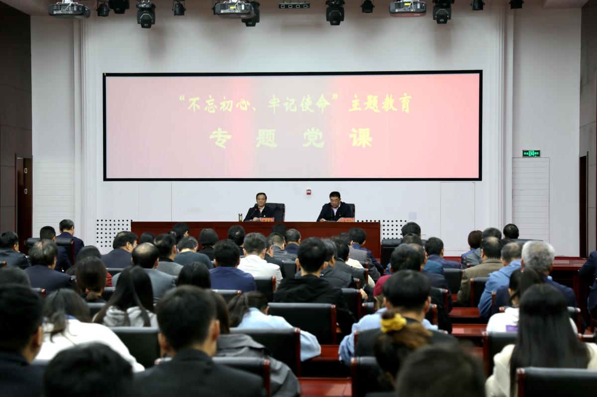 10月17日下午,许昌市委书记胡五岳在我校创新创业学院学术会议中心,为广大党员干部和师生带来一堂生动精彩的“不忘初心、牢记使命”主题教育专题党课。我校党委书记闫纪建主持。