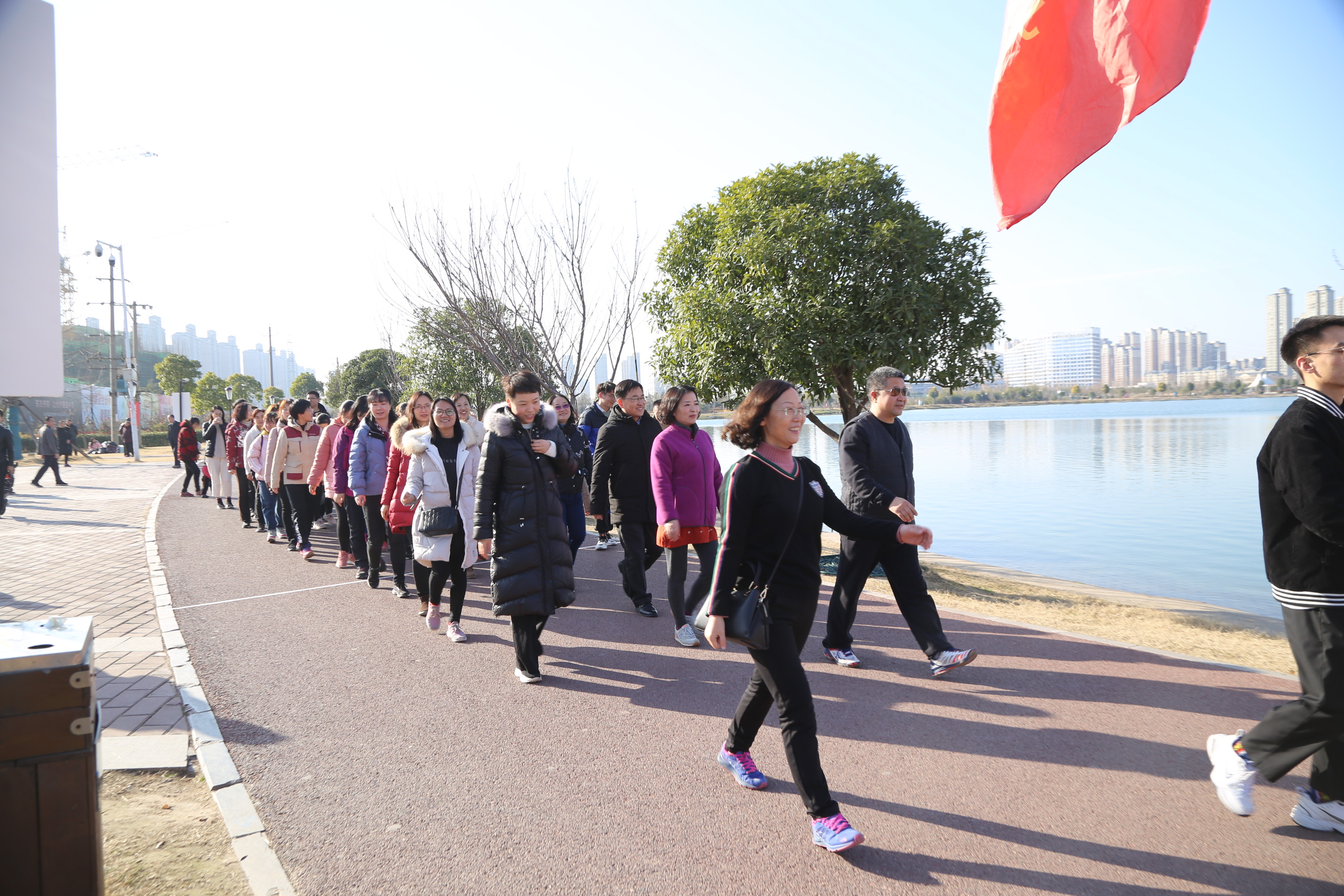 12月27日下午,我校在鹿鸣湖公园举办以“强身健体、快乐生活、建功许院”为主题的“迎新年”教职工健步走活动。校党委书记闫纪建、院长岳修峰、党委副书记孙海、工会主席高金星和全校29个分工会近1400名教职工一起参加了活动。