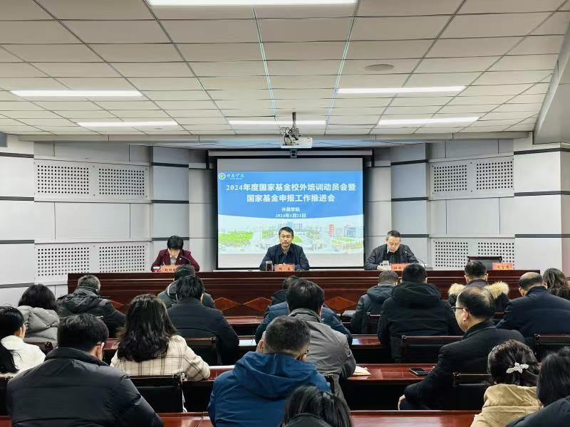 1月21日下午,我校在办公楼第三会议室召开国家基金校外培训动员会暨国家基金申报工作推进会,正式拉开我校2024年度国家基金项目申报工作序幕。校长郑直,副校长杜根远出席会议,各相关二级学院院长、分管科研工作副院长、科研骨干代表等参加会议。会议由科研处处长赵艳敏主持。