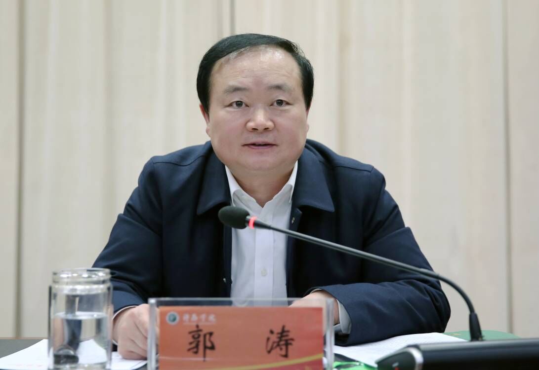 校党委书记郭涛在会上讲话。他指出,2023年是许昌学院浓墨重彩、硕果累累的一年。一年来,学校在省委、省政府和省委教育工委、教育厅的坚强领导下,积极融入全省创新驱动、科教兴省、人才强省战略,踔厉奋发、攻坚克难,各项事业呈现出更加昂扬向上的发展态势,高水平应用型大学建设迈出了更加坚实有力的步伐。