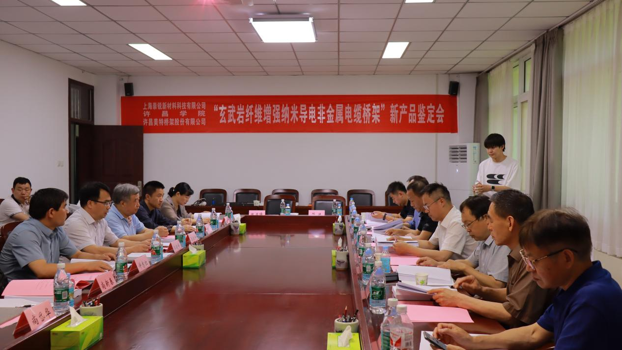 马敬坤介绍了出席会议的各位专家,并对鉴定工作提出了具体建议。校地合作办公室主任郭超峰代表学校致辞。鉴定专家委员会通过现场查阅项目资料,认真听取团队汇报,查验样件产品及现场质询的方式对此项目成果进行了深入且严谨的审核,最后一致认为,该项目在可导电非金属纳米电缆桥架关键技术领域取得了显著的创新成果,拥有完全的自主知识产权。鉴定委员会一致认为该技术水平达到了国际先进水平,所开发的新型导电非金属电缆桥架产品填补了国内外市场的空白,对于推动电缆桥架行业的科技进步和产业升级具有重要意义。
