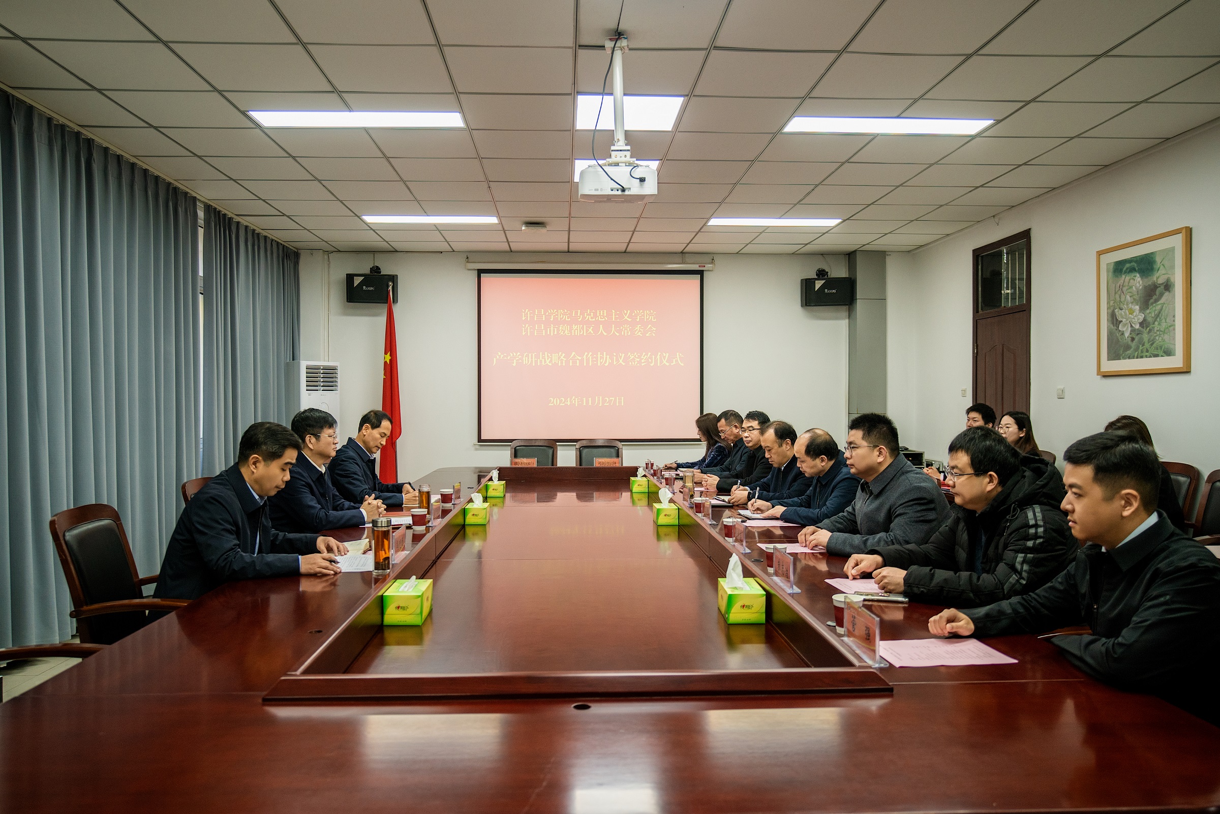 11月27日上午,我校马克思主义学院与许昌市魏都区人大常委会产学研战略合作协议签约仪式在办公楼第四会议室举行。校党委副书记、工会主席梁予昉,魏都区人民代表大会委员会党组书记、主任申健民出席签约仪式,魏都区和许昌学院相关职能部门负责人参加本次仪式。签约仪式由校党委组织部部长冯晓民主持。