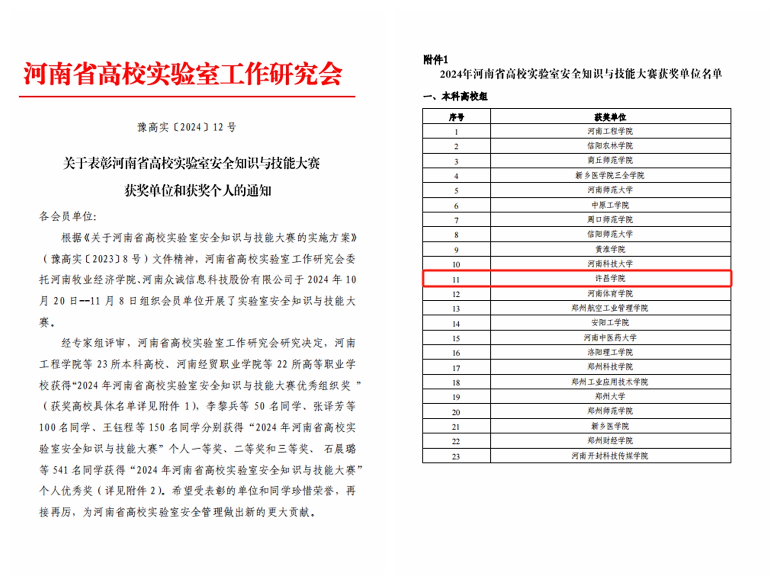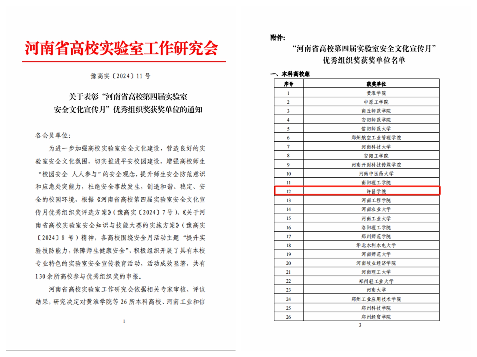 近日,河南省高校实验室工作研究会先后下发了《关于表彰“河南省高校第四届实验室安全文化宣传月”优秀组织奖获奖单位的通知》《关于表彰河南省高校实验室安全知识与技能大赛获奖单位和获奖个人的通知》,我校分别荣获“河南省高校第四届实验室安全文化宣传月”优秀组织奖、“2024年河南省高校实验室安全知识与技能大赛优秀组织奖”,文史与传媒学院学生郜艺涵等6名学生在2024年河南省高校实验室安全知识与技能大赛决赛中荣获个人奖项。