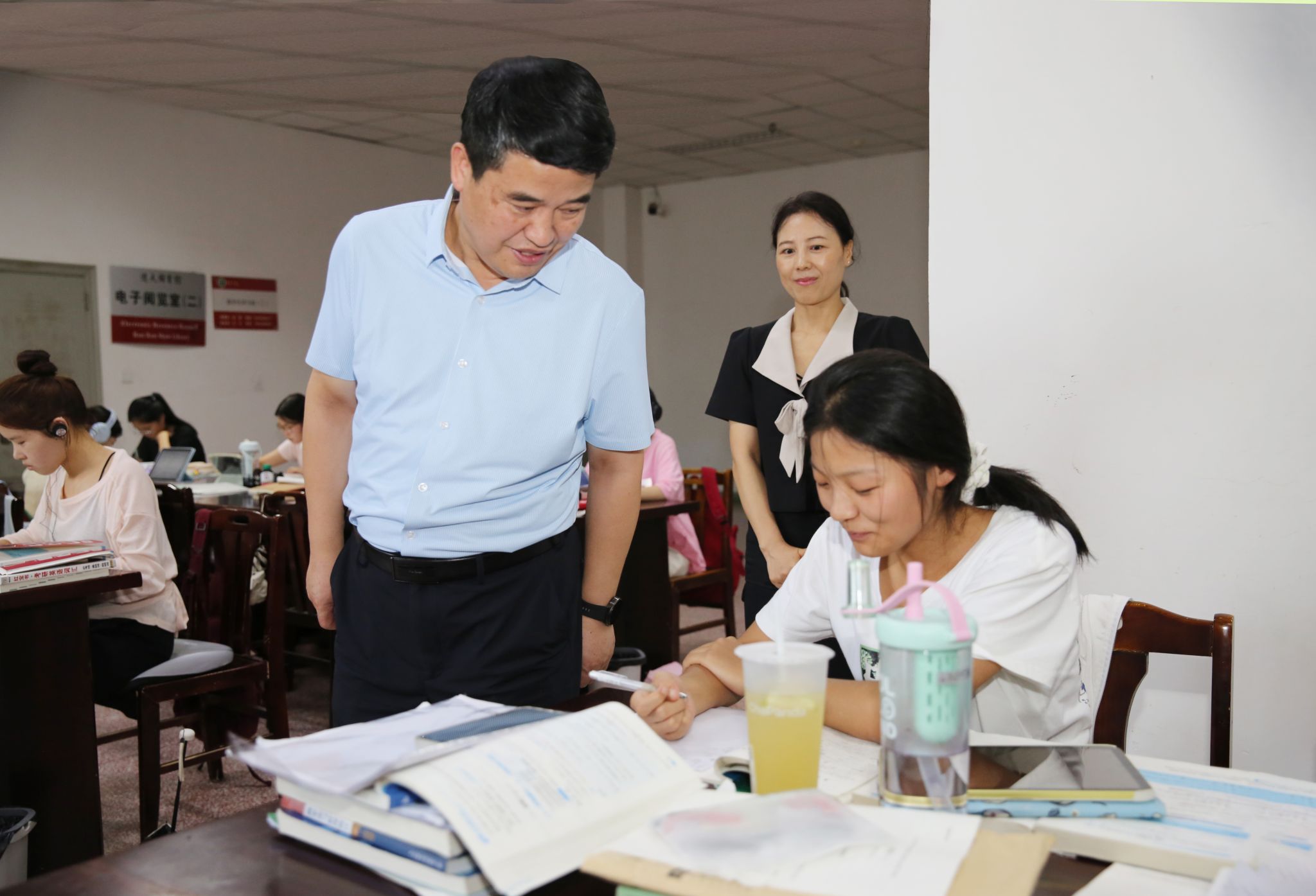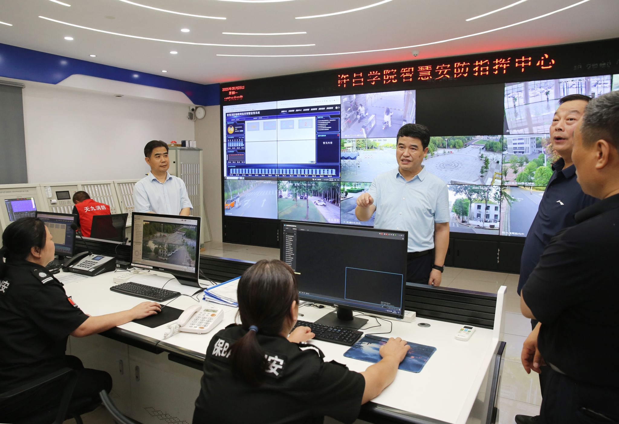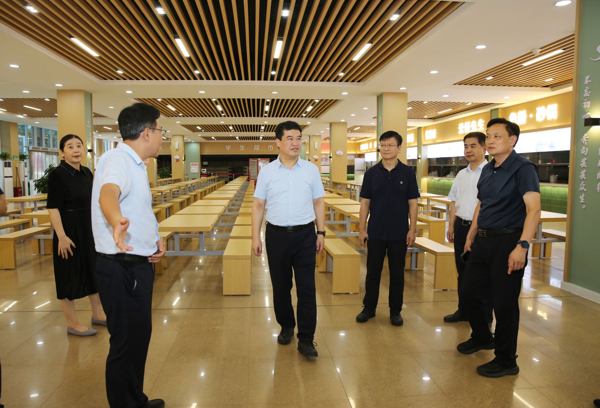 调研过程中,刘荣增先后来到图书馆、学生公寓、危化品中转站、学生餐厅、智慧安防指挥中心、实验室、博雅书院“一站式”学生社区等场所,与留校师生亲切交流,认真听取各相关单位负责人工作汇报,详细了解安全设施配备、危化品存储和使用、食品卫生安全、校园交通安全、重点工程建设和新学期开学迎新准备等工作落实情况。