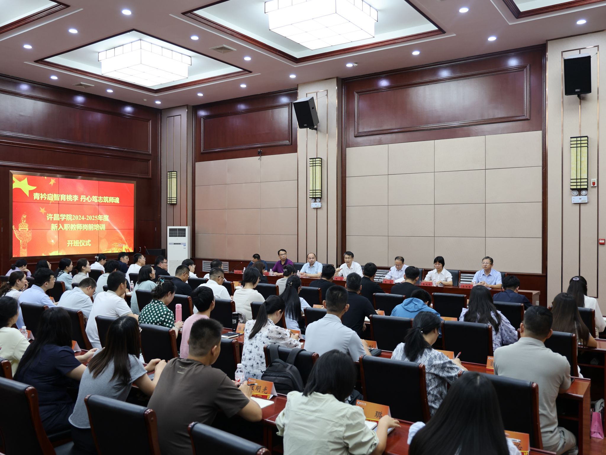 8月31日下午,我校2024-2025年度新入职教师岗前培训开班仪式在学术会议大厅举行。校长郑直、副校长王俊出席仪式,人事处、教务处、科研处、校地合作办公室、教师中心等部门负责人及109位新入职教师参加。开班仪式由王俊主持。