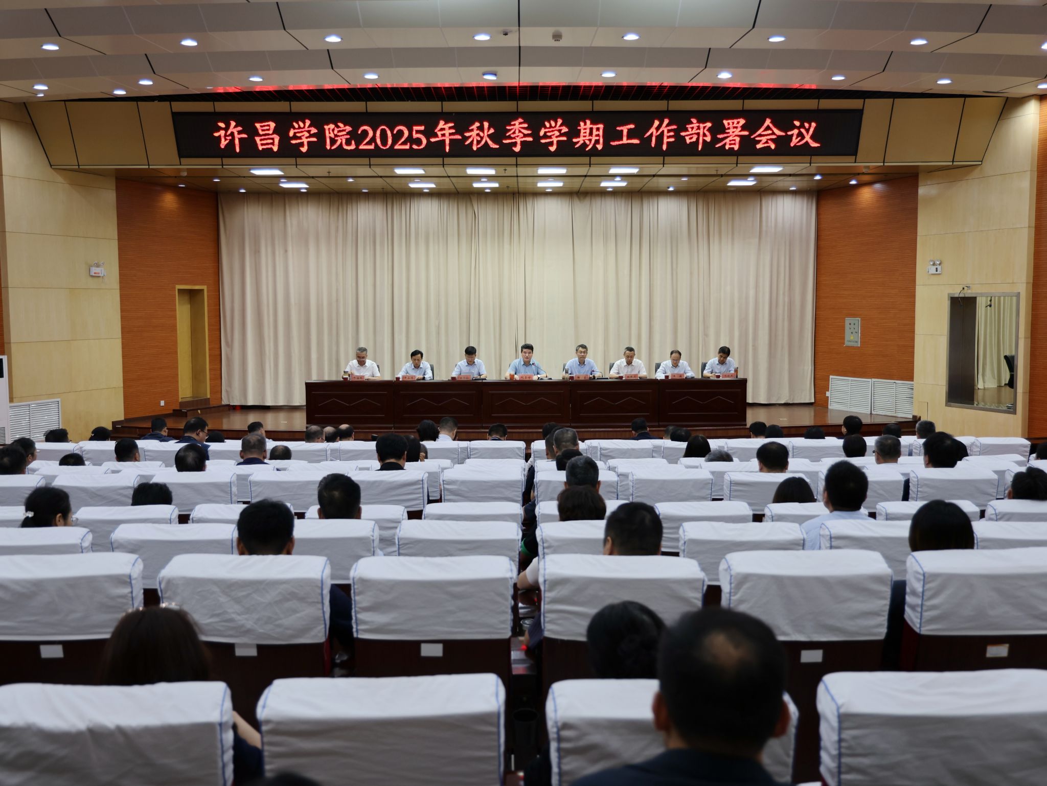 9月7日下午,我校在图书馆学术报告厅召开2025年秋季学期工作部署会议,回顾总结学校上半年工作,并对下半年重点工作进行安排部署。校党委书记刘荣增,校长郑直,党委副书记、工会主席梁予昉,副校长杜根远,纪委书记、监察专员申占伟,副校长王俊、牛海鹏、冯晓民出席会议。全体中层干部参加会议。