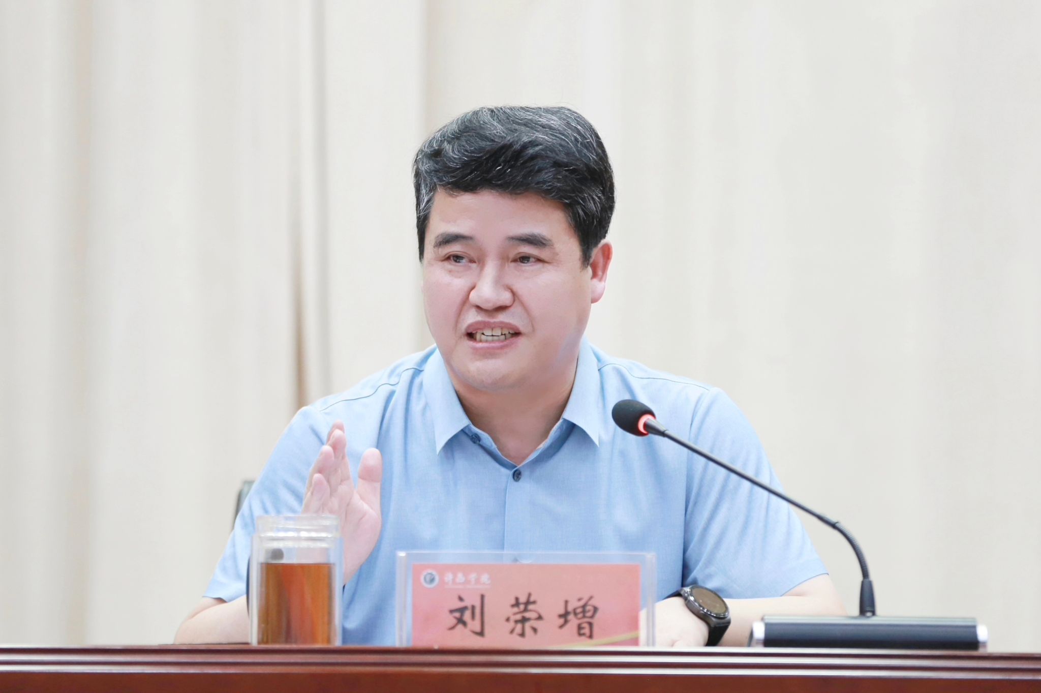 梁予昉在主持会议时指出,全体领导干部要及时抓好本次会议精神的传达学习,提前研究谋划好新学期各项工作,狠抓工作落实、主动扛牢责任,勠力同心、团结奋斗、笃行实干,以新气象、新担当奋力开创学校事业发展新局面。(摄影:孙旭涛、杨哲)
