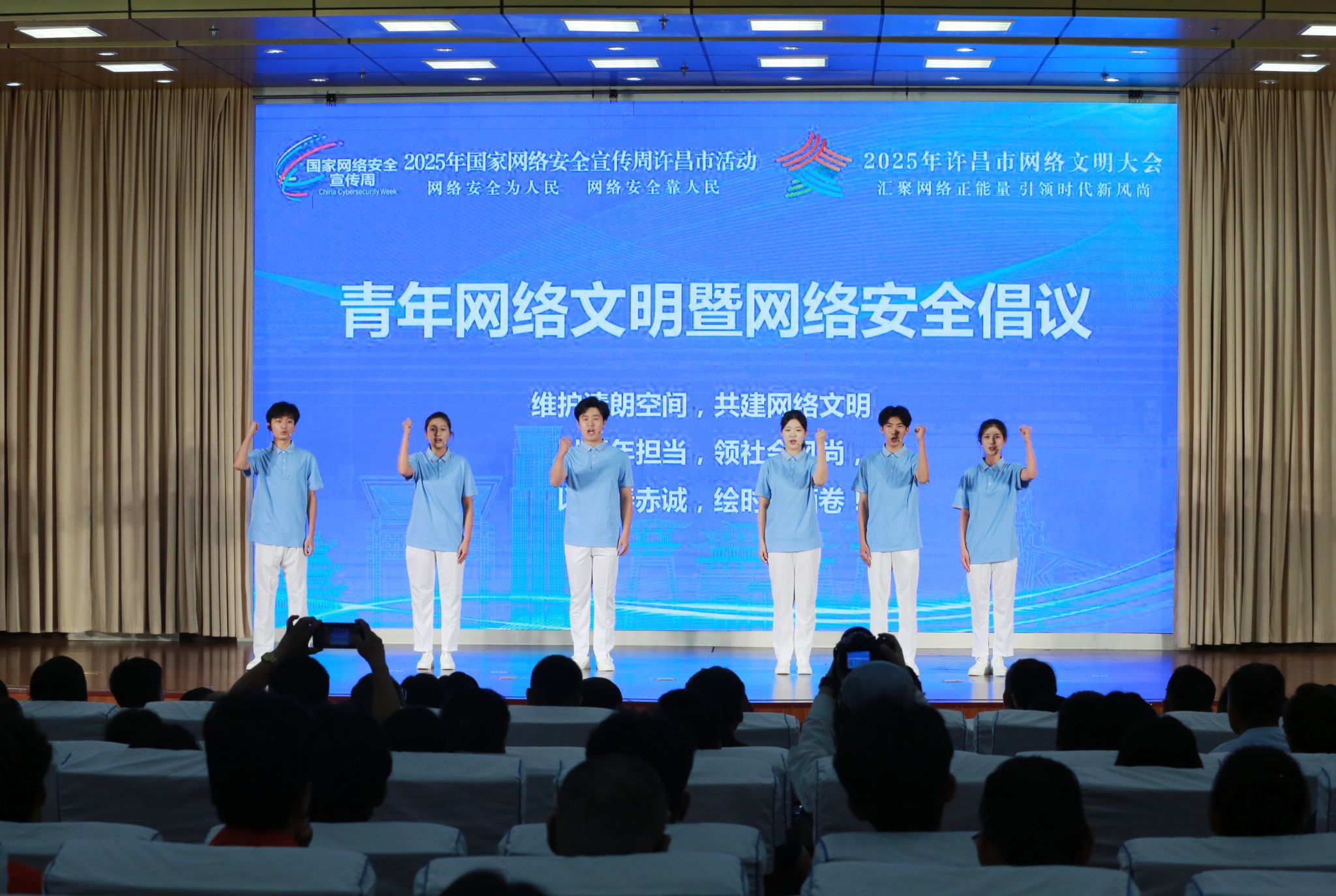 开幕式上,与会领导为“许昌好网民”、2024年度网评工作“创四优”竞赛活动获奖者颁发了证书,与会人员共同观看了许昌市网络文明建设和“网络素养群众性宣讲活动‘155工程’”开展情况展播,许昌市网络名人代表和“许昌好网民”进行了经验分享。我校选送的优秀网络文化作品及原创情景剧进行了现场展演,学生代表宣读了《青年网络文明暨网络安全倡议》。