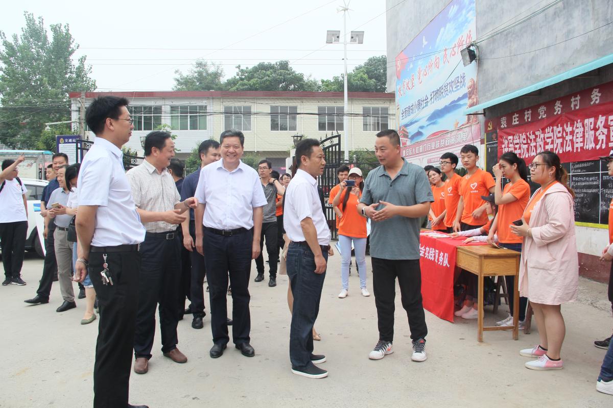 在小召乡北寨村,党委副书记孙海、工会主席高金星一行在建安区副区长沈春光、驻村第一书记王军的陪同下,共同看望慰问了“小召大爱”综合扶贫实践队的指导教师和队员们,孙海副书记详细了解了队员们的扶贫活动内容和食宿情况,并以习近平总书记经历的知青岁月为例,激励实践队员们努力克服生活上的困难,尽自己所能助力小召乡北寨村脱贫攻坚。