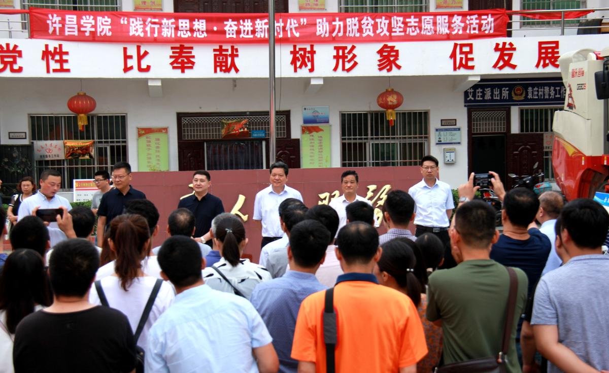 6月26日上午,由校工会组织的“践行新思想·奋进新时代”——助力袁庄村脱贫攻坚教职工志愿服务活动启动仪式在我校对口帮扶村建安区艾庄回族乡袁庄村举行。校工会主席高金星,党委组织部长陈遂德、建安区武装部政委李发扬、群工部部长李书正、艾庄回族乡党委书记刘迎君、乡长刘文奇等出席启动仪式,建安区区乡帮扶负责人、袁庄村两委班子成员和我校承担志愿服务项目的相关分工会负责人、志愿者代表100余人参加启动仪式。仪式由我校驻袁庄村第一书记陈浩勇主持。