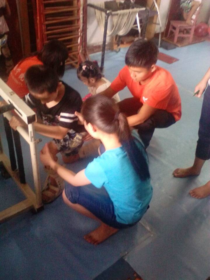 根据活动安排,队员们各司其责,认真的开展对脑瘫儿童进行康复训练,教孩子们过斑马线,教孩子们学习写字等活动。在教孩子们过斑马线的过程中,实践队员不厌其烦的带着孩子们反复过马路,目的让孩子们的脑海中能产生深刻印象,让孩子们牢记过马路要走斑马线。孩子们认真的学习态度时刻感动着我们的实践队员。