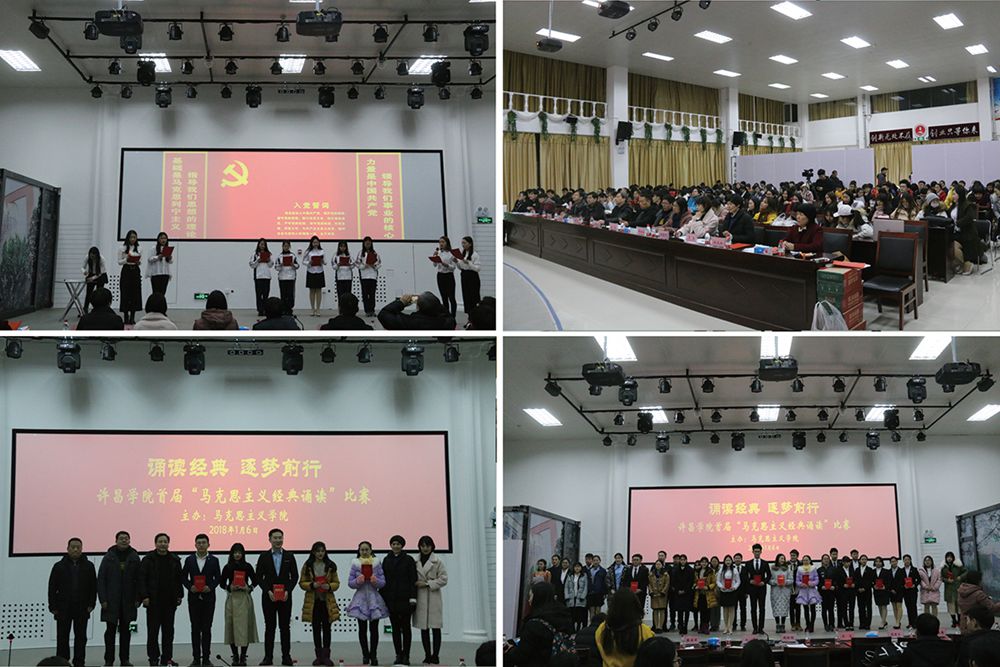 1月6日晚,由马克思主义学院主办的“诵读经典 逐梦前行——许昌学院首届‘马克思主义经典诵读’比赛”在创新创业学院培训中心举行。本次活动是以党的十九大精神为指导,为落实教育部“思想政治理论课教学质量年”工作要求,推动马克思主义理论和党的十九大精神进教材、进课堂、进头脑而举办的专题活动。校党委宣传部、学工部、教务处和马克思主义学院等单位有关负责人担任了比赛评委。