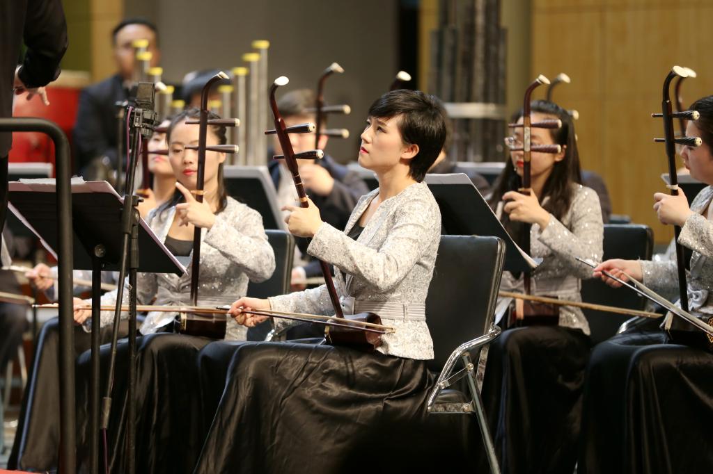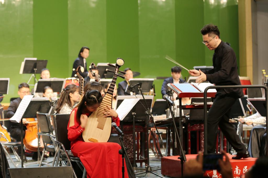 河南民族乐团始建于1957年,是一支在国内外享有盛誉的、有着鲜明中原特色的民族乐团,长期坚持致力于民族音乐的挖掘、整理和研究,创作并演奏了一大批富有浓郁中国民族风格和河南地方特色的民族器乐作品。本场音乐会特邀中国广播民族乐团青年指挥家葛亚南担任乐团指挥。音乐会以民族管弦乐《北京喜讯到边塞》震撼开场,通过民族管弦乐、二胡齐奏、琵琶协奏、笛子齐奏等不同形式精彩演绎了民族经典作品,幽默诙谐、生动欢快的《挑山》,清新婉约、深情款款的《红楼梦序曲》,万马奔腾、铁蹄急急的《新赛马》,西域风情、大气磅礴的《丝绸之路》,更值得一提的是,琵琶协奏曲《十面埋伏》作为乐队版改编曲目在河南首演。河南民族乐团的艺术家们用笛子、琵琶、二胡、板胡、大提琴、阮、唢呐等多种乐器演绎了《高山青》《郎歌》《正月十五闹雪灯》《卢沟晓月——大宅门写意》《快乐的啰嗦》《花好月圆》等十二首脍炙人口的经典作品。悠悠国风、酣畅淋漓,河南民族乐团的精湛演绎博得了现场观众的阵阵喝彩,演奏结束大家纷纷起立鼓掌。