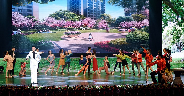 《印象许昌》是河南省首部全方位展示一个城市的历史、文化、生态、经济、社会的舞台主题音乐作品。作品包括序曲、五个乐章和尾声七个部分组成。其中,第一乐章“厚重之土”讲述了许昌的厚重历史,第二乐章“文化之乡”以许昌三张文化名片“中国三国文化之乡”、“中国陶瓷文化之乡”、“中国腊梅文化之乡”入手,展示了许昌的文化气息;第三乐章“宜居之地”展示了许昌作为国家级园林城、森林城、旅游城、卫生城、文明城的魅力;第四乐章“创造之都”赞美了许昌人“大众创业、万众创新”的精神风貌;第五乐章“奋进之路”展示了许昌近年来的辉煌业绩和综合实力,讴歌了许昌人的勤劳和智慧。 (图片由音乐舞蹈学院提供)