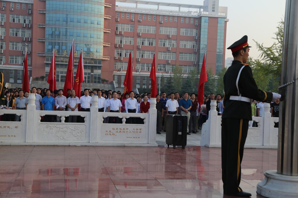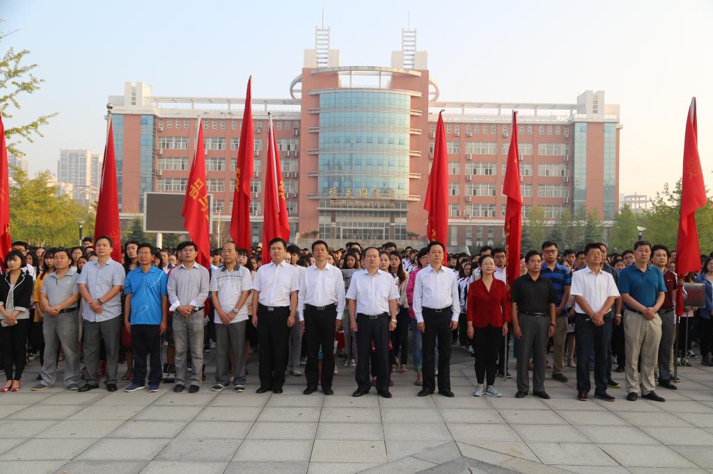 今天(9月7日)是新学期的开学第一天,早上6点40分,我校在弘毅广场庄严举行纪念抗日战争暨世界反法西斯战争胜利70周年主题升旗仪式。校党委副书记马超、副院长郭涛出席仪式。校党委宣传部部长潘春彩、学生工作部部长陈彪、团委书记张鹏辉和各教学院部党总支书记、副书记,团总支书记、副书记,辅导员及学生代表等1500余人参加了庄严升旗仪式。仪式由陈彪处长主持。