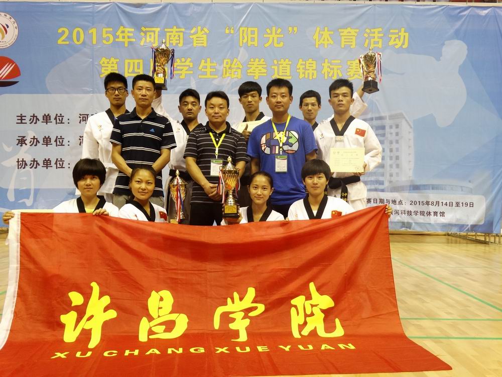 8月14日至19日,由河南省教育厅主办的2015年河南省“阳光”体育活动第四届学生跆拳道锦标赛在黄河科技学院举行,来自全省包括小学、中学和高校在内的79所学校的800余名运动员组成的79支代表队参加比赛。我校体育学院代表队参加比赛并获得1金1银、3铜和4个单项第五名、女子品势集体第六名的好成绩。