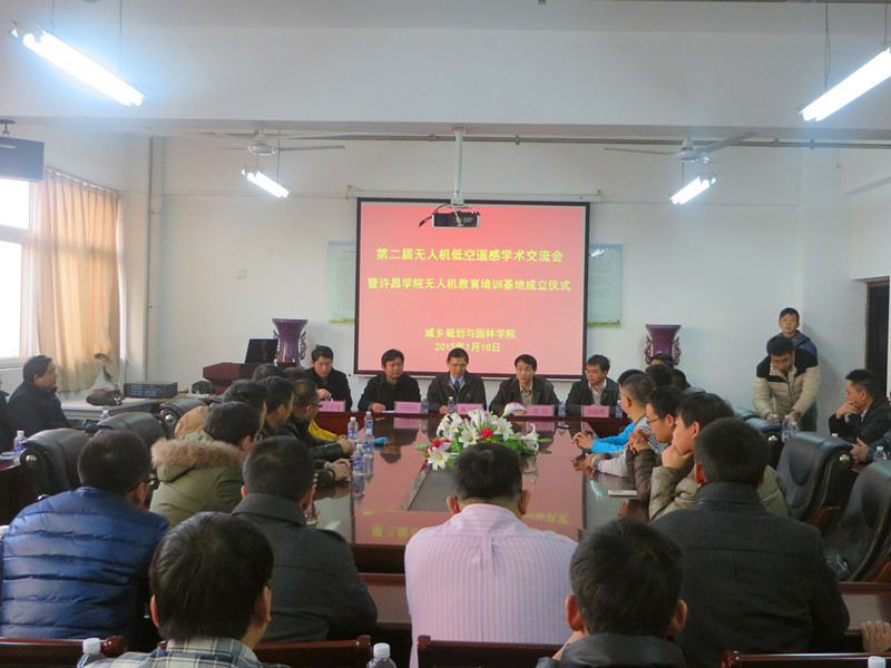 2015年1月10日,由我校城乡规划与园林学院主办的第二届无人机低空遥感学术交流会暨河南省无人机教育培训基地成立大会在综合实验楼二楼会议室举行。台湾碳基科技股份有限公司总裁林正昀、北京中云图科技有限公司董事会会长付守闯、许昌学院副院长郑直,学校职能部门负责人、城乡规划与园林学院领导、相关教师、及企业技术人员参加了本次会议。会议由城乡规划与园林学院院长吴国玺主持。