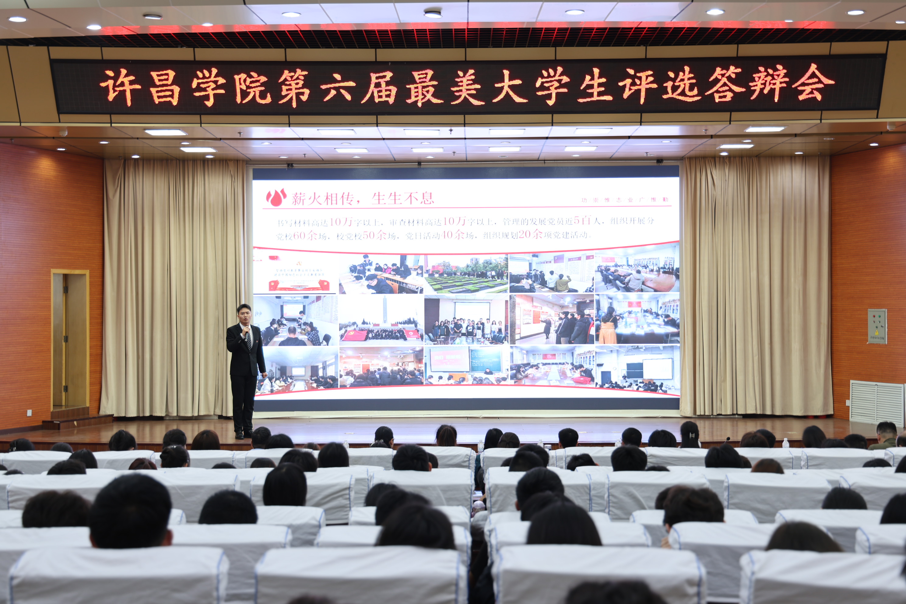 答辩现场,18名来自各学院(社区)的候选人分享了他们大学期间的奋斗故事。他们当中,有自立自强、不懈奋斗的“追梦少年”;有积极参与志愿服务和社会实践活动的“无私奉献者”;有斩获多个学科竞赛奖励,积极投身创新研究的“科研小达人”;有圆梦支教之旅、尚法笃行并热心法律志愿服务的“实践之星”;有从火热军营回到菁菁校园,退伍不褪色的“热血女兵”。各位候选人通过讲述自己的优秀事迹,充分展现了我校学子在思想美、学习美、能力美、实践美等方面良好的精神面貌和优秀品质,彰显了新时代大学生的青春力量与家国情怀,用实际行动诠释了新时代“四有青年”的精神。