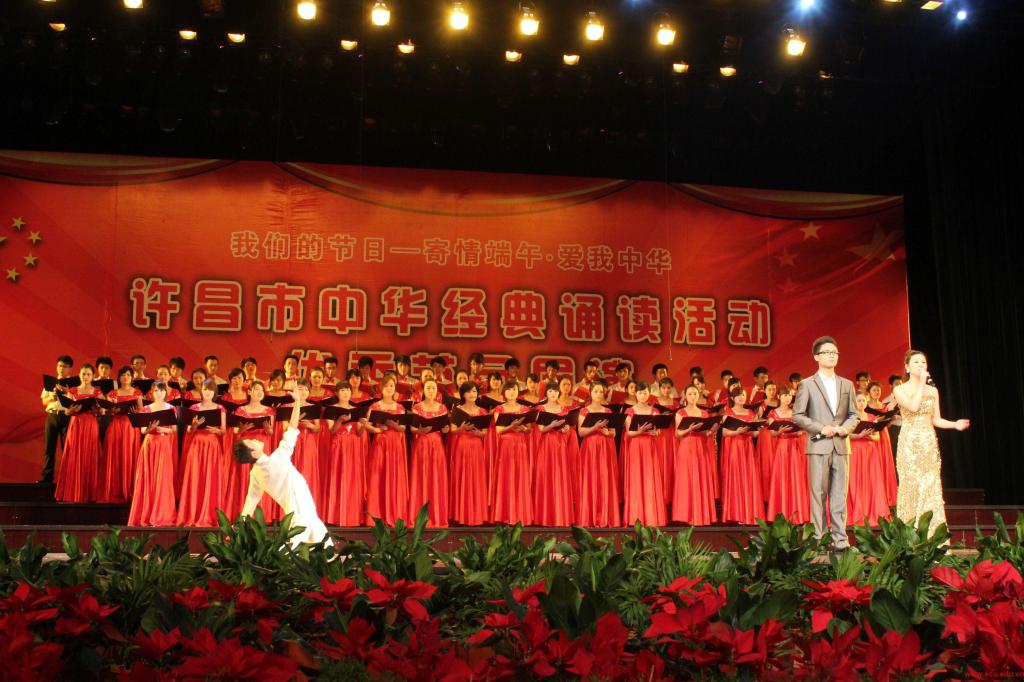 6月3日上午,许昌市“寄情端午•爱我中华”中华经典诵读活动优秀节目展演在新落成的许都大剧院拉开序幕。许昌市有关领导,许昌学院党委副书记汪庆华,许昌学院党委宣传部部长潘春彩等领导出席了本次展演。许昌市有关单位、学校等800余代表观看了展演活动。此次活动由中共许昌市委宣传部、许昌市语言文字工作委员会、许昌市文明办、许昌市教育局、许昌市广电局主办。