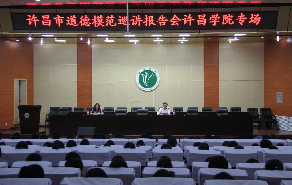 下午,由许昌市委宣传部、市文明办主办,我校承办的许昌市道德模范巡讲报告会在学术报告厅举行。许昌学院党委副书记马超,许昌市委宣传部副调研员、创文办副主任刘宏军出席报告会,我校师生代表300余人参加了报告会。报告会由我校党委宣传部副部长崔越主持。
